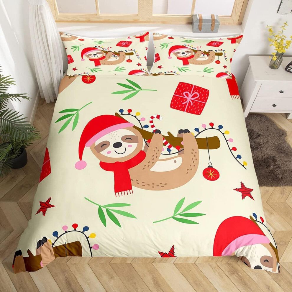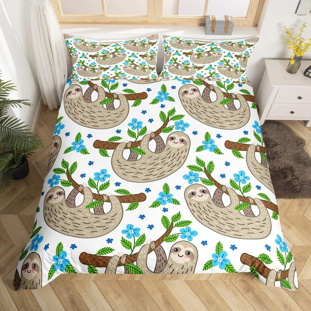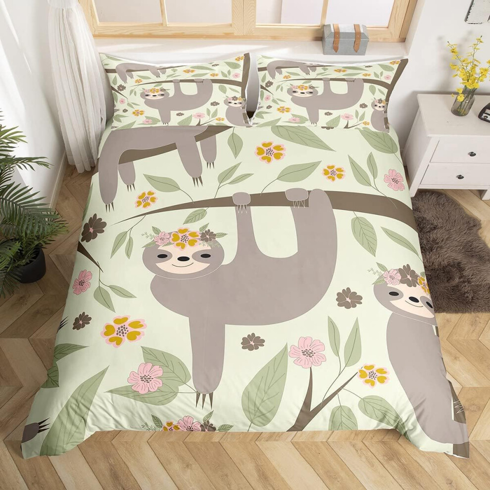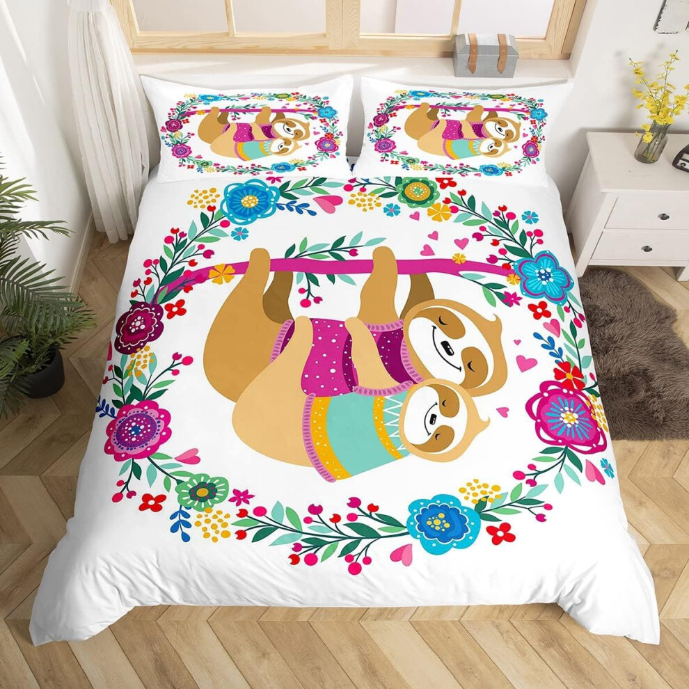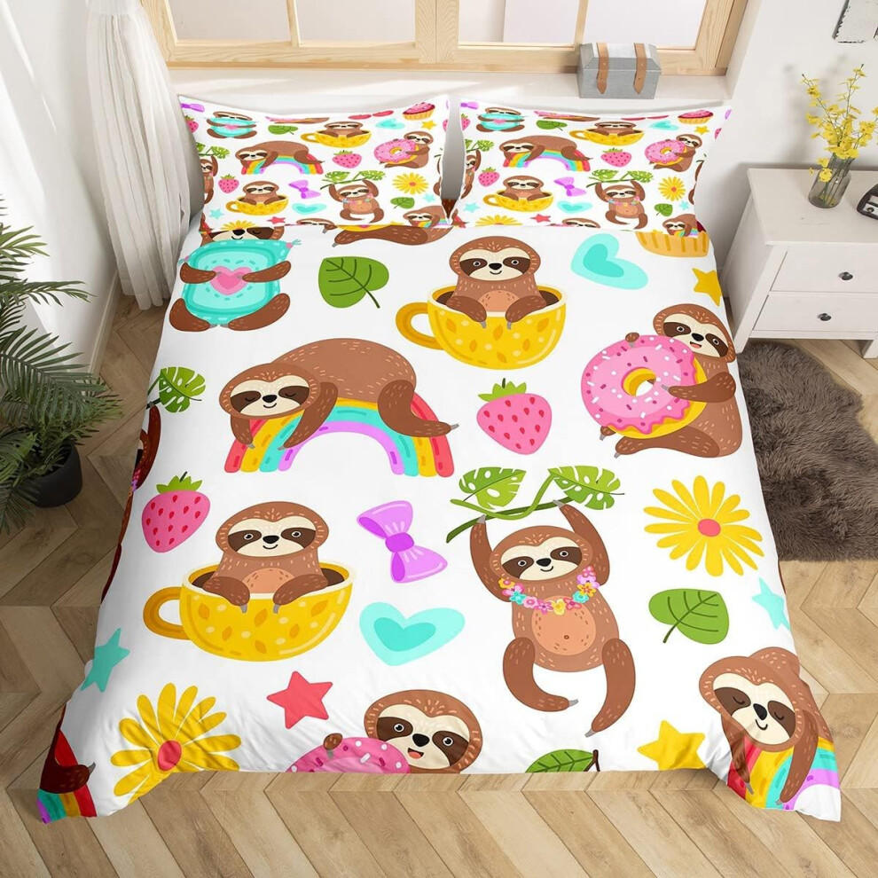 (Multi 07, Double(No Comforter)) Homewish Grey Sloth Duvet Cover Love Heart-Shaped Black Red Buffalo Checked Bedding Set Double Size Chequer Cartoon A