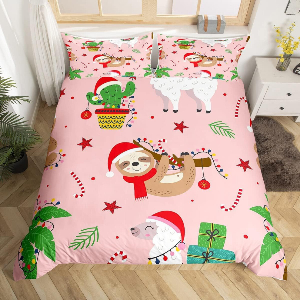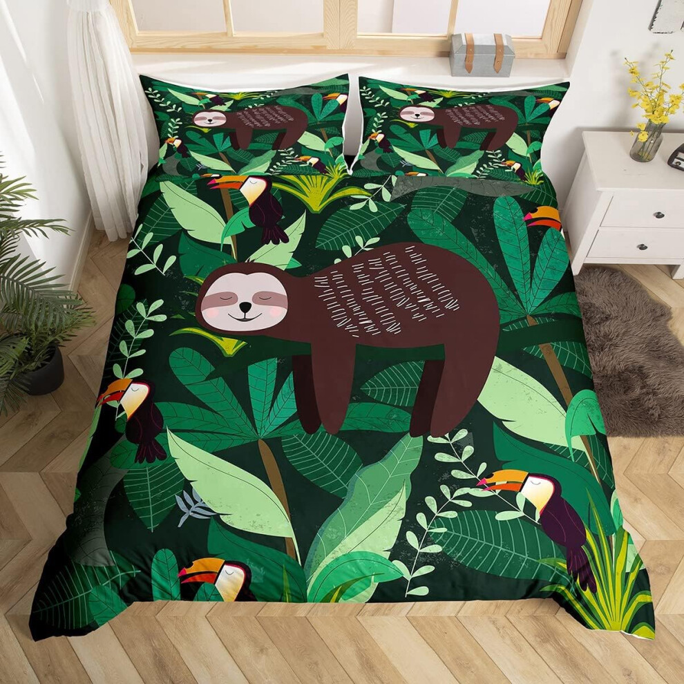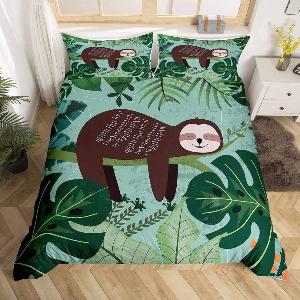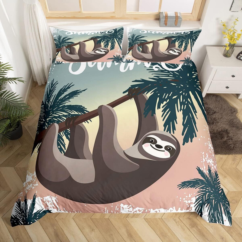 (Multi 07, Double(No Comforter)) Homewish Grey Sloth Duvet Cover Love Heart-Shaped Black Red Buffalo Checked Bedding Set Double Size Chequer Cartoon A