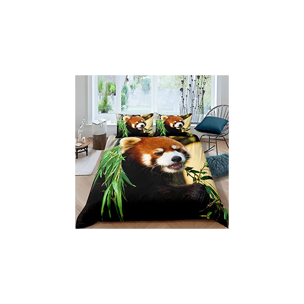 Homemissing Red Panda Bedding Set Cute Animal Comforter Cover for Kids Boys Girls Teens Red Panda Leaves Duvet Cover Breathable Nature Bedding & Linen