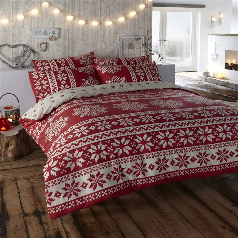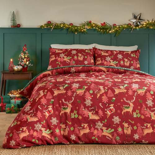 (Red, King) Christmas bedding duvet cover set teal xmas reindeer stag tree festive home