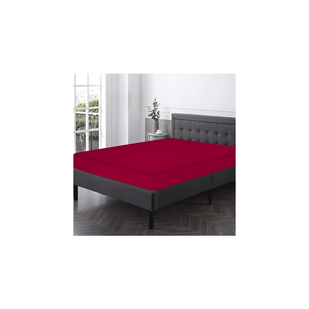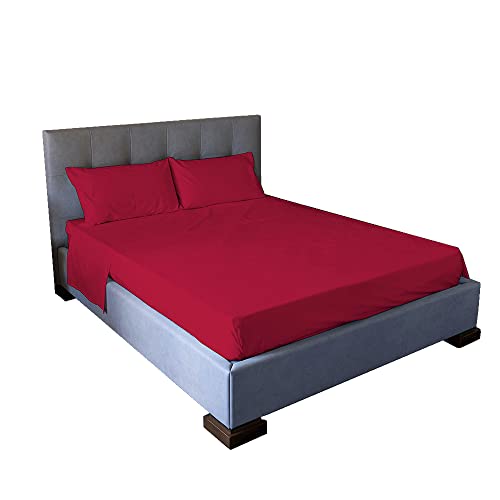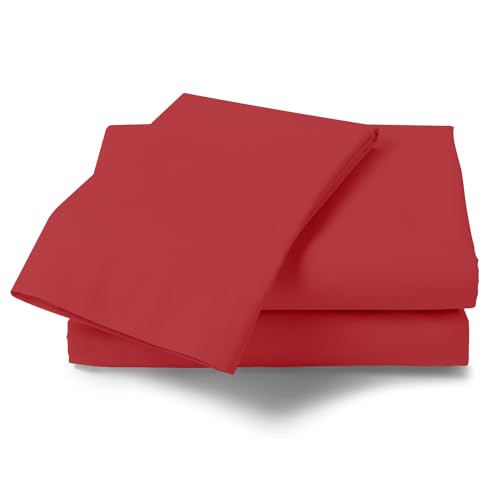 NFK TEXTILE Plain Style PolyCotton Bedsheets with Long-Lasting Color and Easy Care Bedding (Red, Buak)