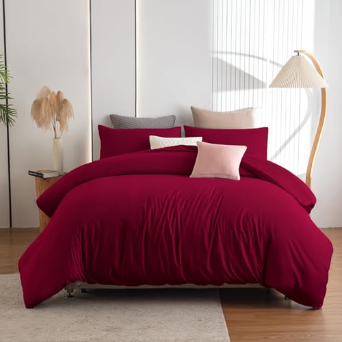 Soifox King Size Duvet Cover Set - Red Bedding Set KingSize Bed with Zipper Closure, Soft Microfiber Quilt Cover with 2 Pillowcases