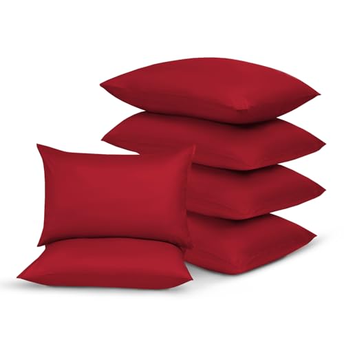 Yorkshire Bedding Red Pillow Cases 6 Pack 100% Soft Brushed Microfiber Pillowcases with Envelope Closure- Fade & Stain Resistant Housewife Pillow Case 50 X 75 Cm