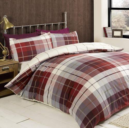 Kampala Hill Flannelette Tartan Check Brushed Cotton Duvet Cover Set Red Bedding Set Super King
