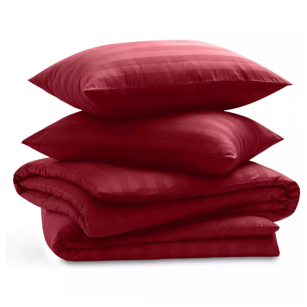(Stripe- King Duvet Cover Set) Reversible Duvet Quilt Cover Red Bedding Sets