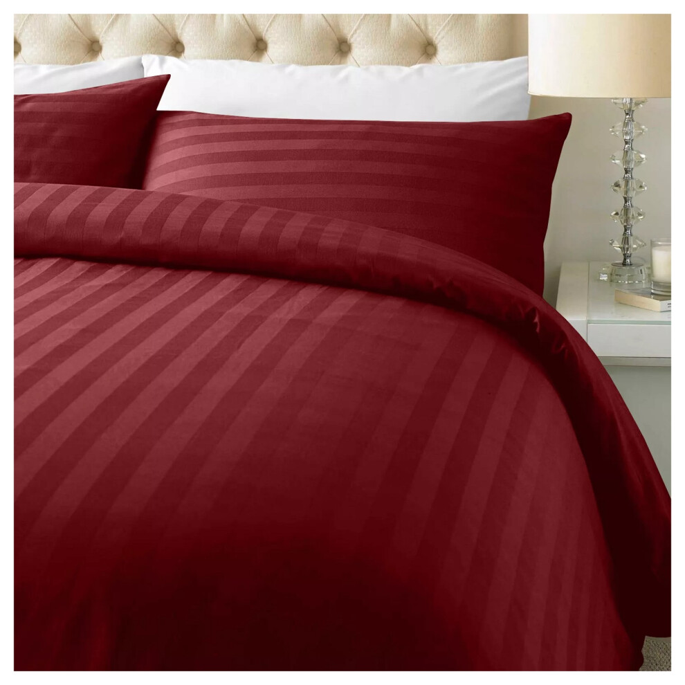 (Stripe- Double Duvet Cover Set) Reversible Duvet Quilt Cover Red Bedding Sets