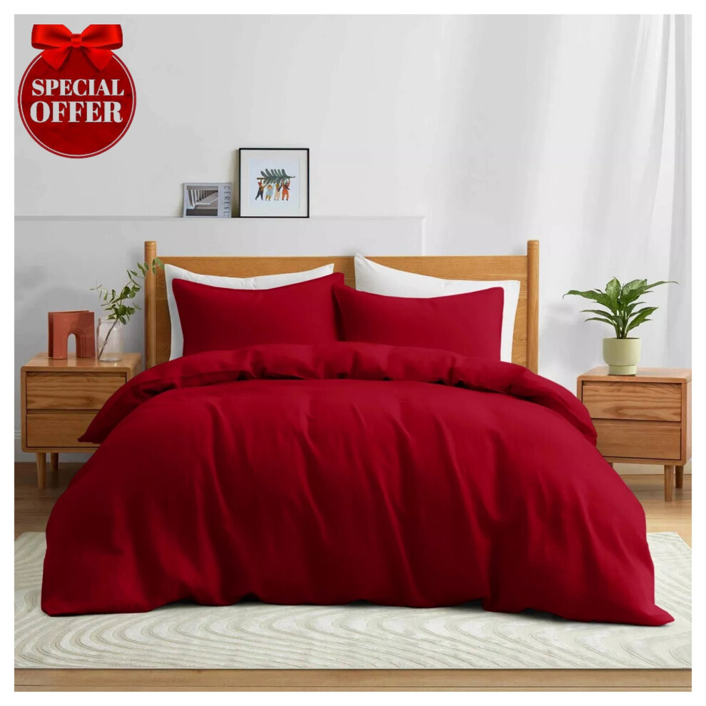 (Plain- Double Duvet Cover Set) Reversible Duvet Quilt Cover Red Bedding Sets