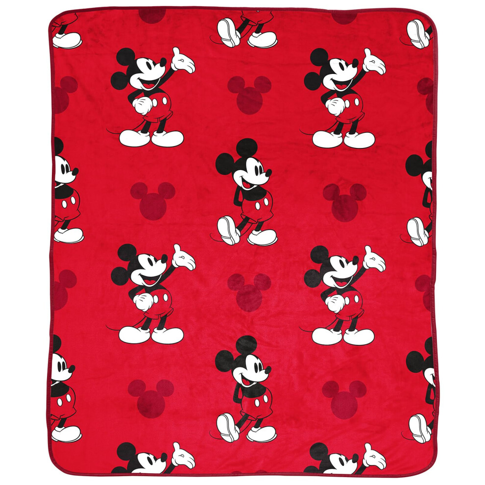 Disney Mickey Mouse Plush Throw Blanket - Measures 50 x 60 Inches - Kids Super Soft Red Fleece Bedding