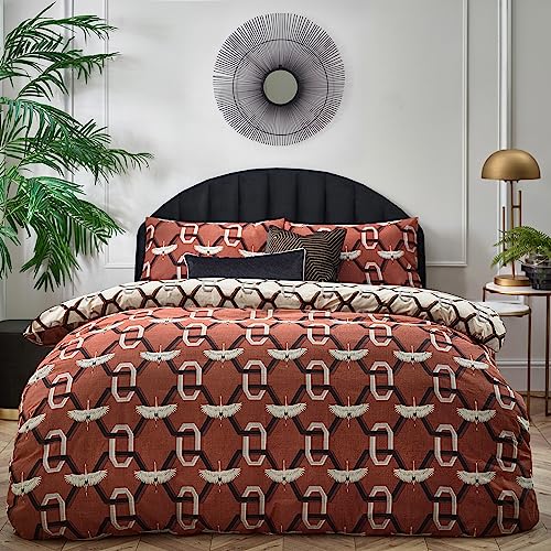 furn. Avalon Duvet Cover Set – Reversible Geometric Art Deco Bedding (Red - Double)