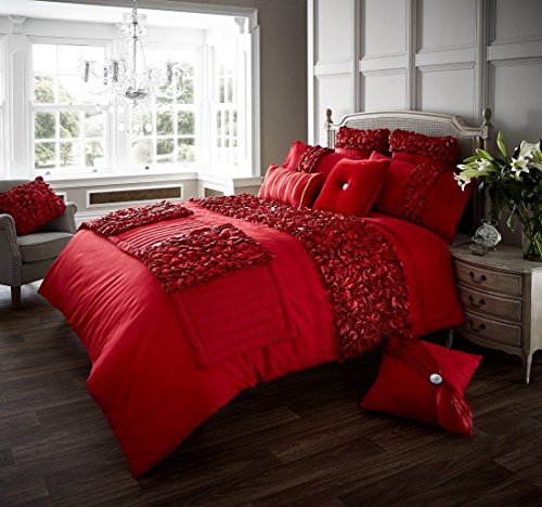 Gaveno Cavailia Fancy Frill Single Duvet Set Verina Red, Luxury Elegant Bedding, 2 Piece Cotton Blend Reversible Bedlinen, Easy Care DuvetCover Bedset, 1 Quilt Cover and 1 Pillow Case