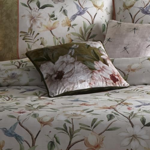 Appletree - Red Floral Velvet Cushion (43 x 43cm) - Reversible Designs - Piped Edge - Dragonfly Cushion in Red - Matching Bedding Available - Flower Cushion with Cover Included/Cushion Insert