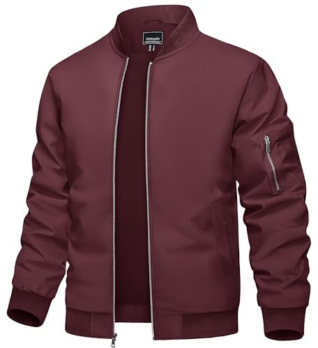 TACVASEN Bomber Jackets Mens Lightweight Wine Red Jacket Quilted Winter Jacket Casual Coats Hiking Windbreaker Fishing Hunting Jackets Wine Red