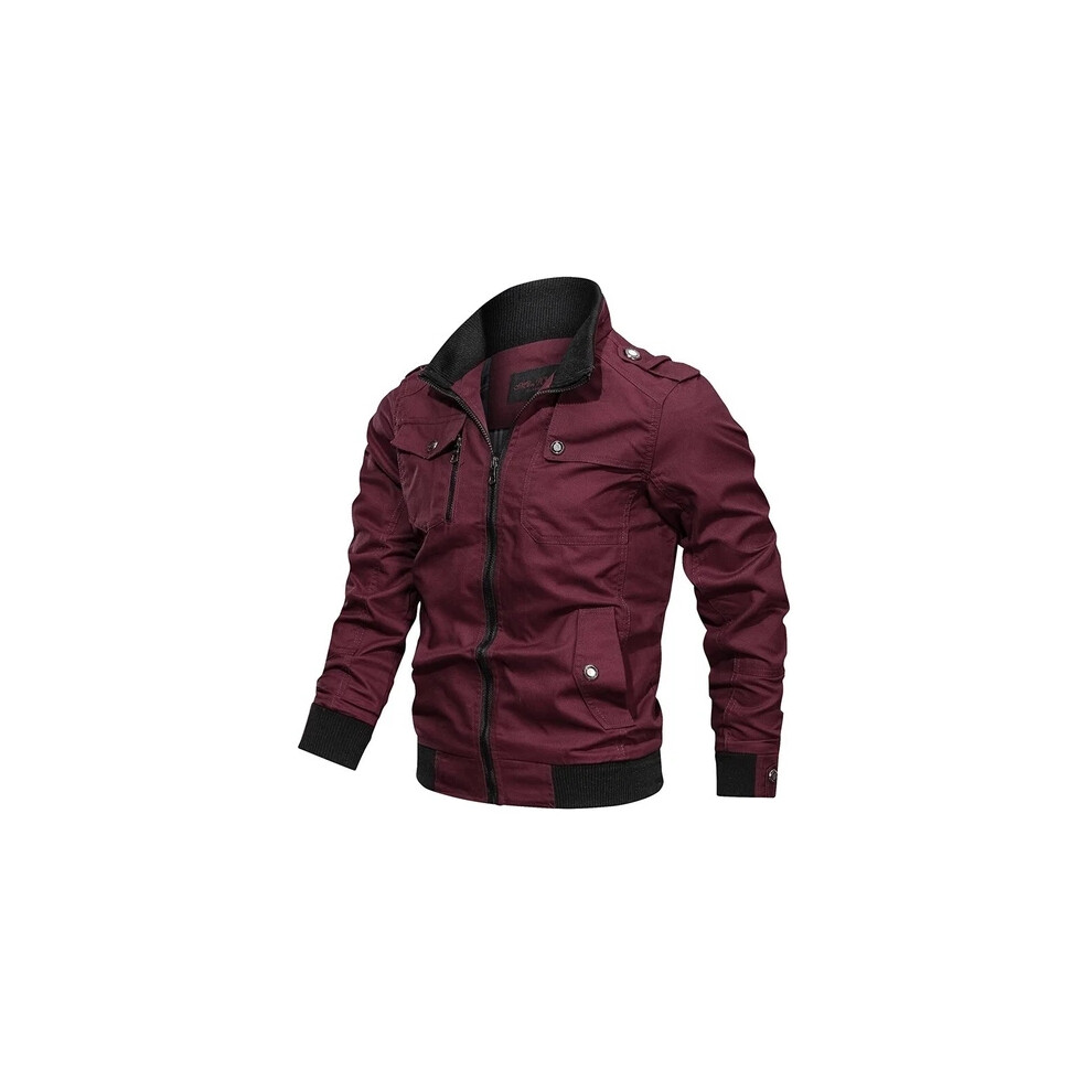(Red, XL) Bomber Men Jacket Bike Motorcycle Coat Outwear Lightweight Streetwear Overcoat