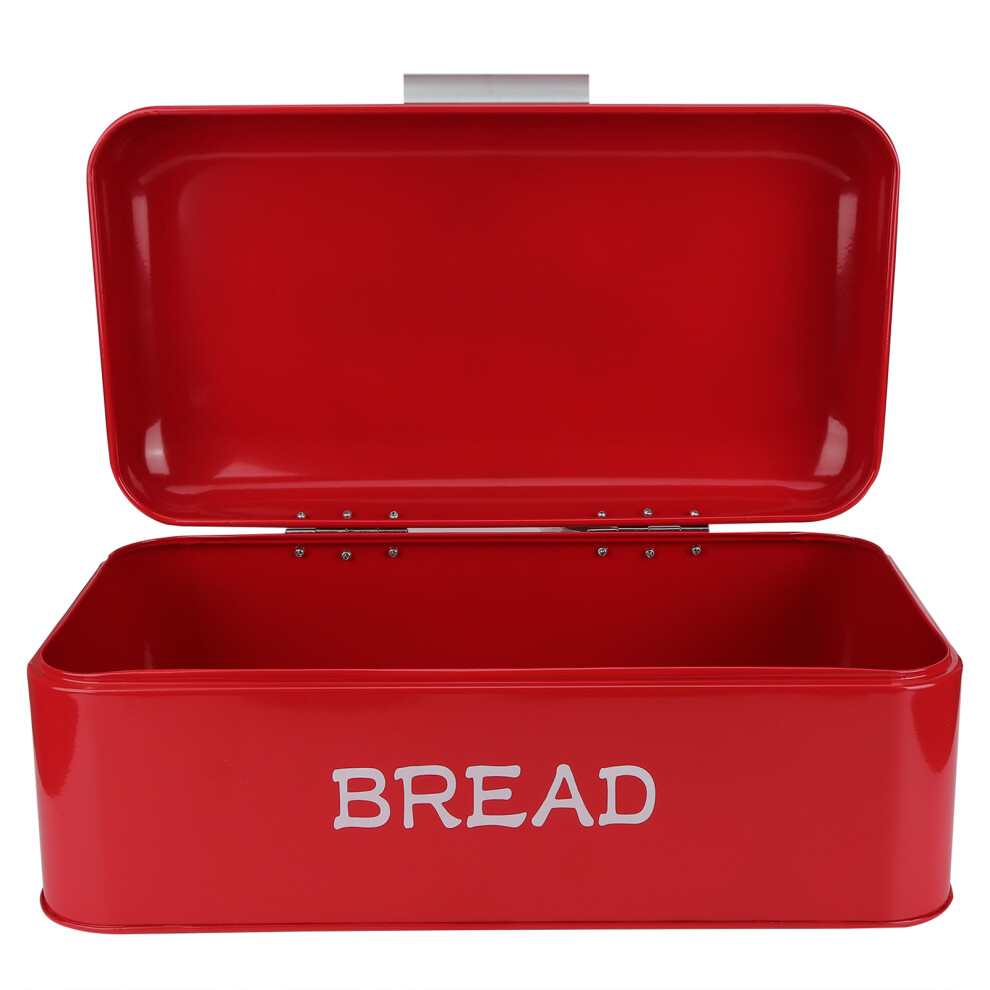 (Red, 34.5x23x14.5cm) Bread Storage Bin Container Metal Bread Box Roll Lid Bin Kitchen