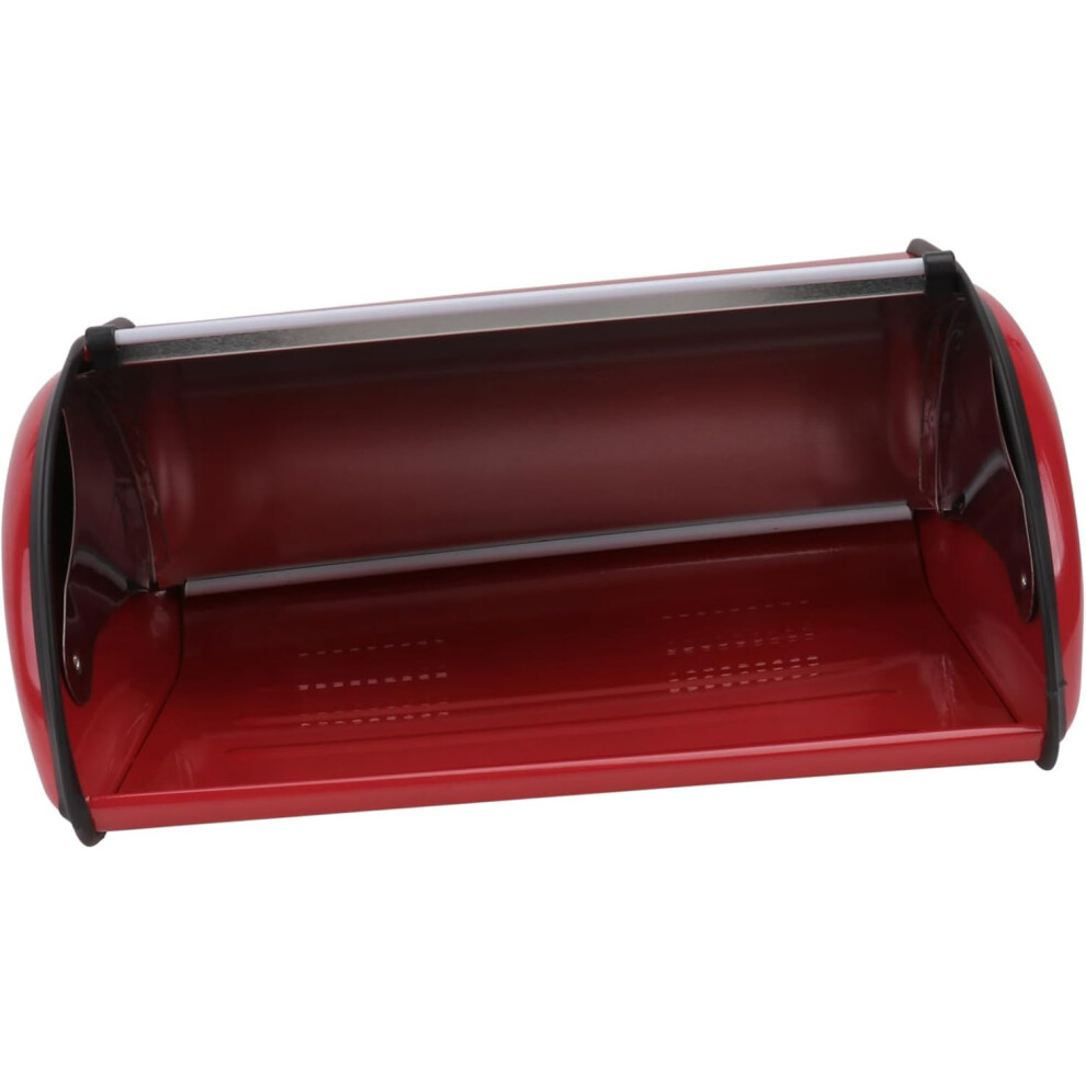 (Red, 34.5x23x14.5cm) Metal Bread Box Roll Top Bread Bin Storing Breads Inside Kitchen Easy