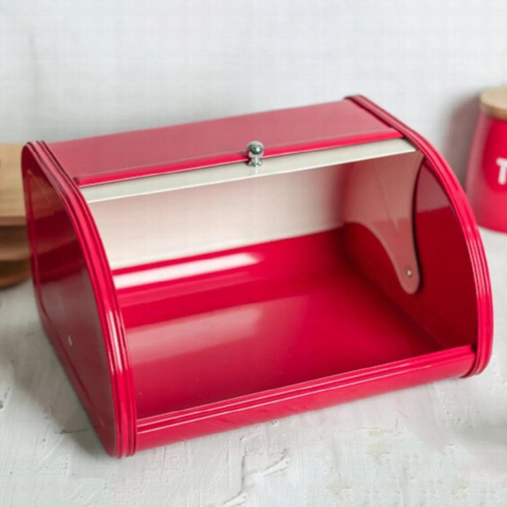 Retro Metal Bread Bin Large Kitchen Storage (Red)