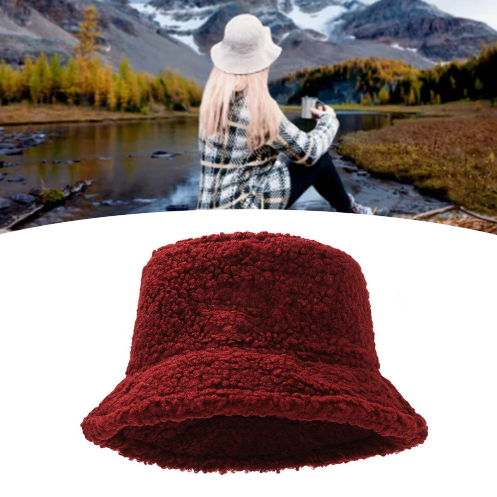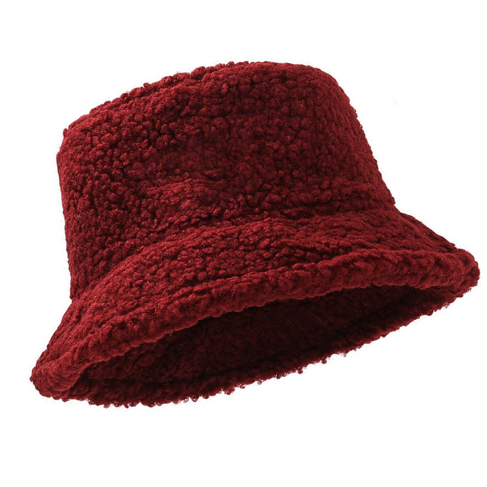 Warm Red Lambswool Bucket Hat for Women & Girls, Thick & Embroidered