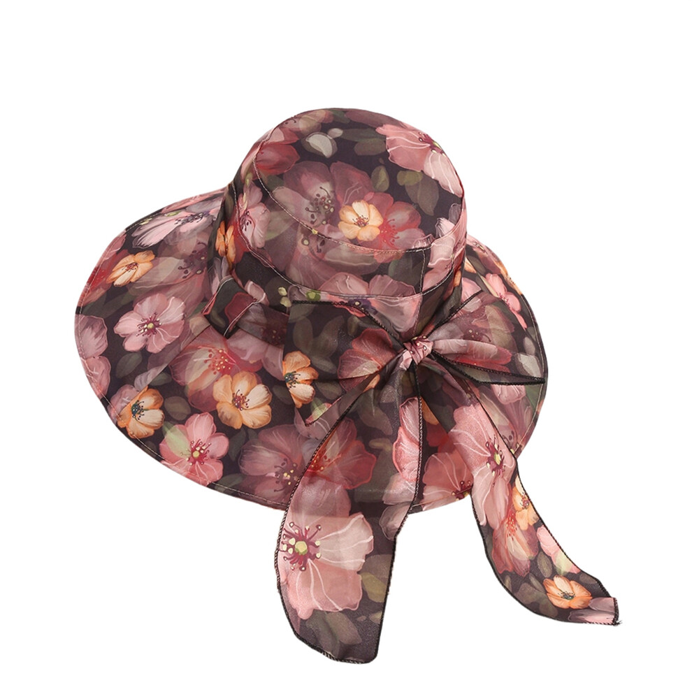 (One Size, Wine Red) Women Summer Bucket Hat with Bows Floral Print Breathable Wide Brim Sun Hat Fisherman Cap for Outdoor Travel Beach