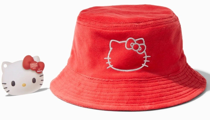 BNWT New Claire's Accessories Sanrio Red Bucket Hat Hello Kitty 50th Anniversary