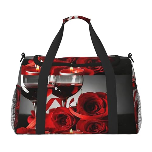 FEYUNYAN Extra Large Tote Bag with Adjustable Strap, Water-Resistant Travel Duffel with Anti-Slip Handles, Red Wine Rose Candle, Heavy-Duty Twill Crossbody Bag for Gym, Weekend Trips & Outdoor Sports