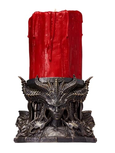 Homes Direct 365 Medium Antique Brass Candlestick With Red Shade