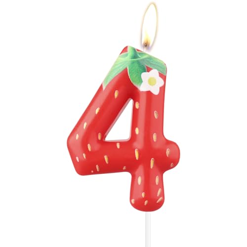 Birthday Cake Number 4 Candle, Red Strawberry Flower Birthday Candle for Boys Girls, Party Decoration Topper Suitable for Various Activities, Family Gatherings, Children's Day
