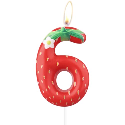 Birthday Cake Number 6 Candle, Red Strawberry Flower Birthday Candle for Boys Girls, Party Decoration Topper Suitable for Various Activities, Family Gatherings, Children's Day