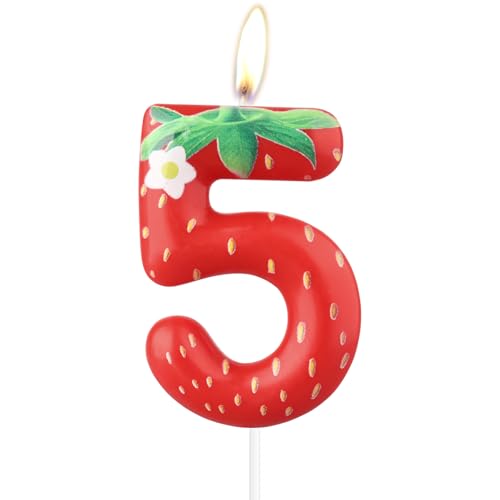 Birthday Cake Number 5 Candle, Red Strawberry Flower Birthday Candle for Boys Girls, Party Decoration Topper Suitable for Various Activities, Family Gatherings, Children's Day
