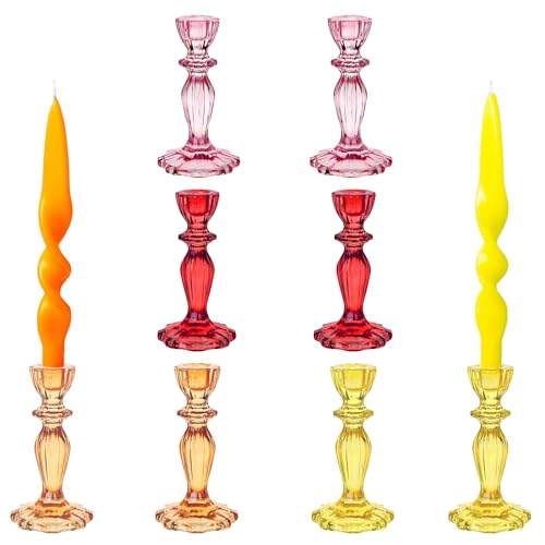 Talking Tables 8 x Coloured Glass Candlestick Holders 2 x pink, orange, yellow and red candle holders, bright and beautiful home décor, or summer outdoor table wedding decorations 16cm