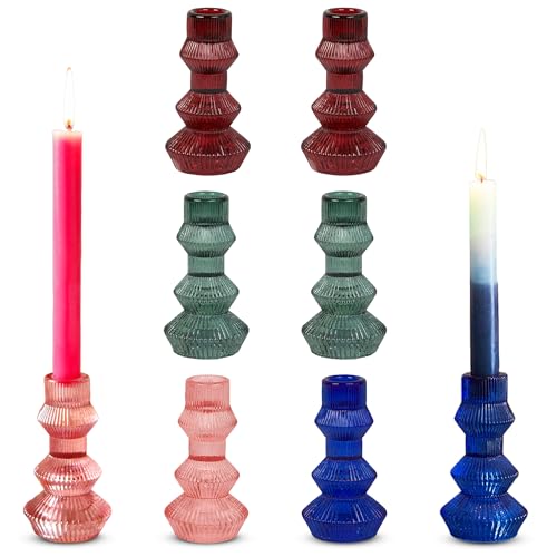 Talking Tables 8 x Coloured Glass Candlestick Holders 2 x pink, blue, red, green candle holders, elegant and beautiful home décor, or summer outdoor table wedding decorations 12cm
