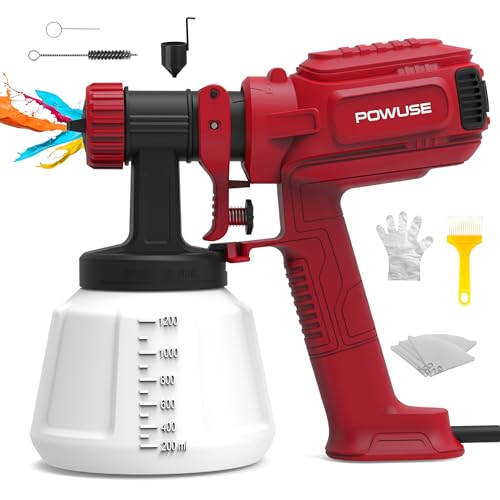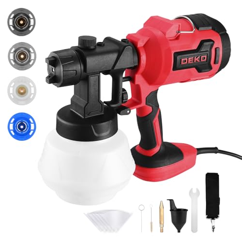 Paint Sprayer Gun 700W HVLP: DEKOPRO Electric Spray Paint Gun, Easy to Clean for House Painting Furniture Cabinets Fence Walls Door Garden Chairs, 4 Nozzles and 3 Patterns Red