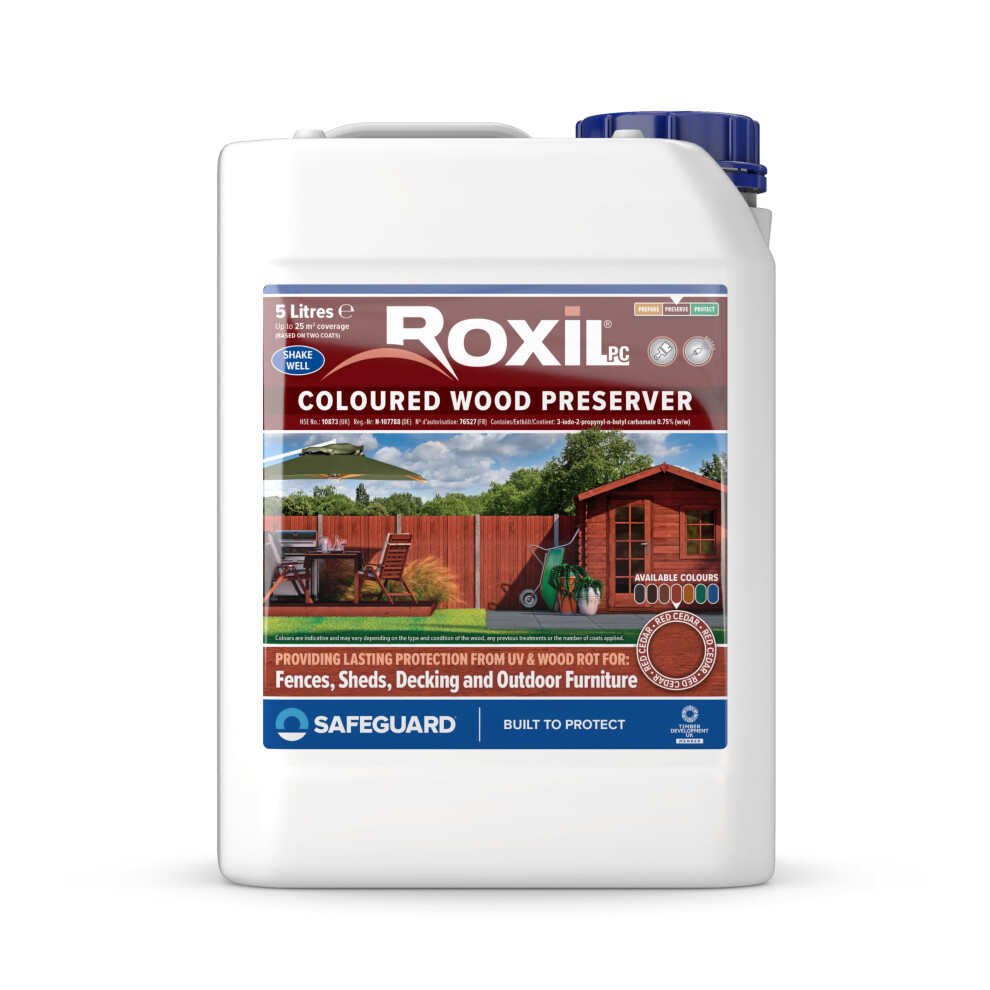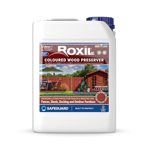 Roxil Wood Stain Preserver 5 Litre (Red Cedar) Fast-Drying Satin Finish for Decking, Fence, Shed, Furniture. Up to 5 Year Protection for Indoor & Outdoor