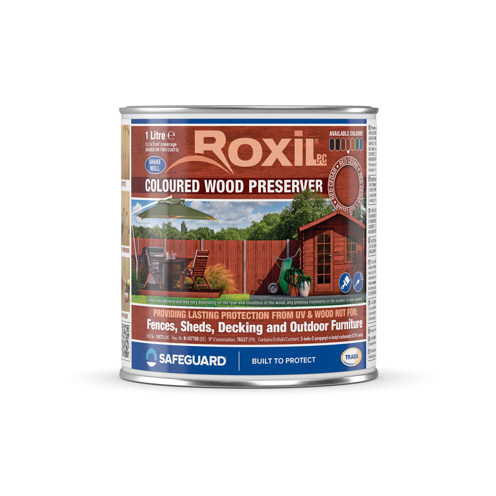 (1L, Red Cedar) Roxil Wood Stain Preserver - Fast-Drying Satin Finish for Decking, Fence, Shed, Furniture. Up to 5 Year Protection for Indoor & Outdoo