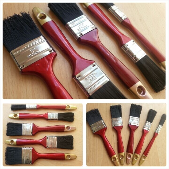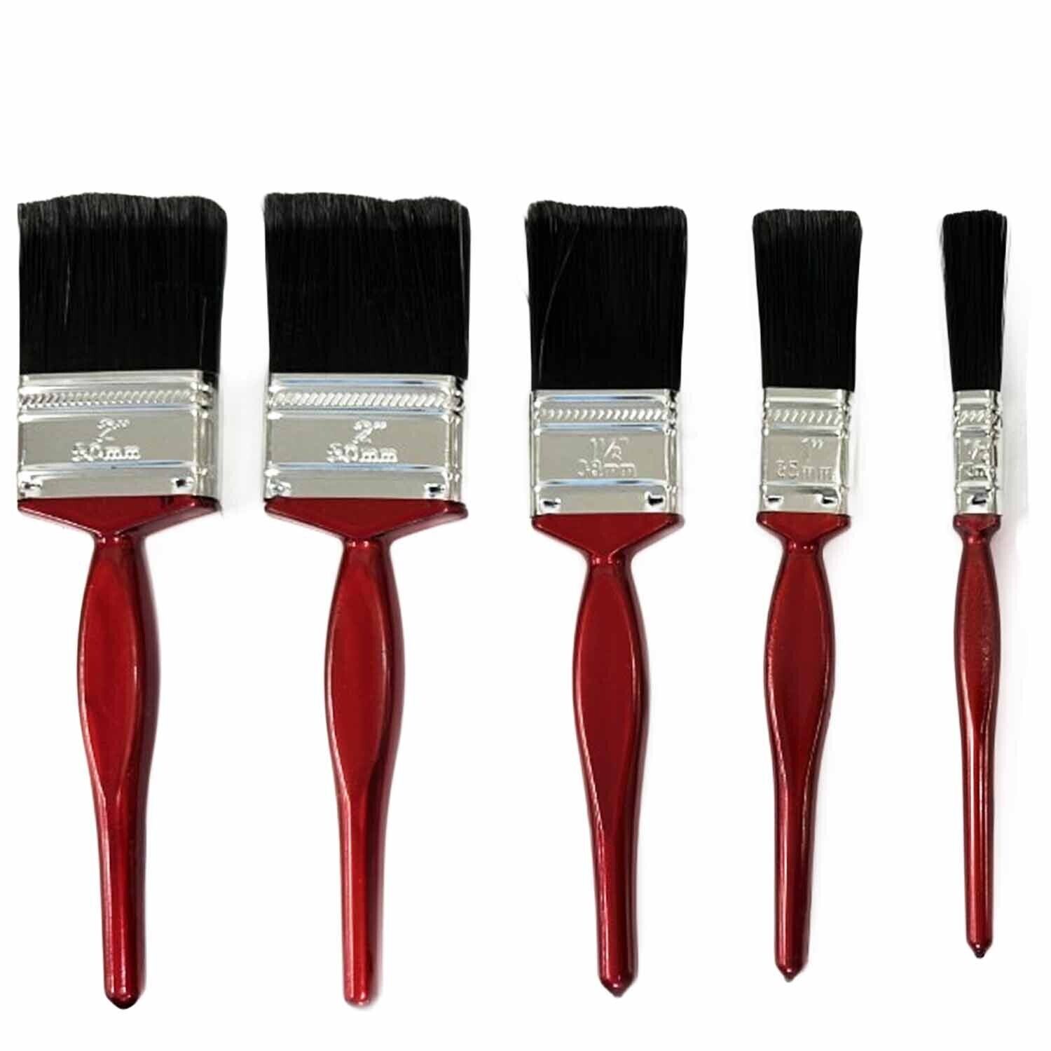 5 Set Paint Brush Set Home Wall Wood Fence Gloss Emulsion Red Handle DIY EC