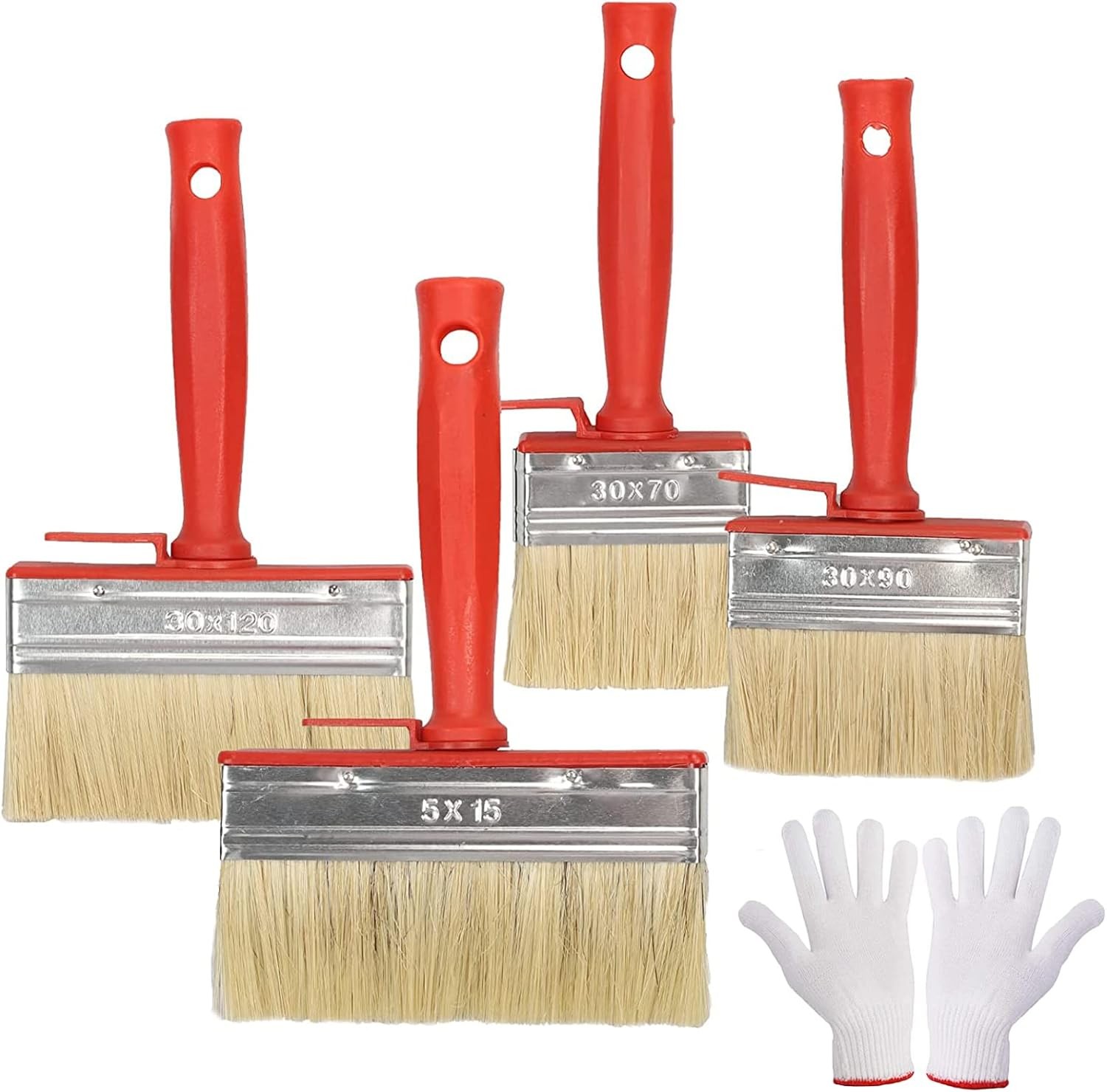 WAIZHIUA 4Pcs Fence Paint Brush Set - 4 Sizes with Gloves, Decking Paint Brush