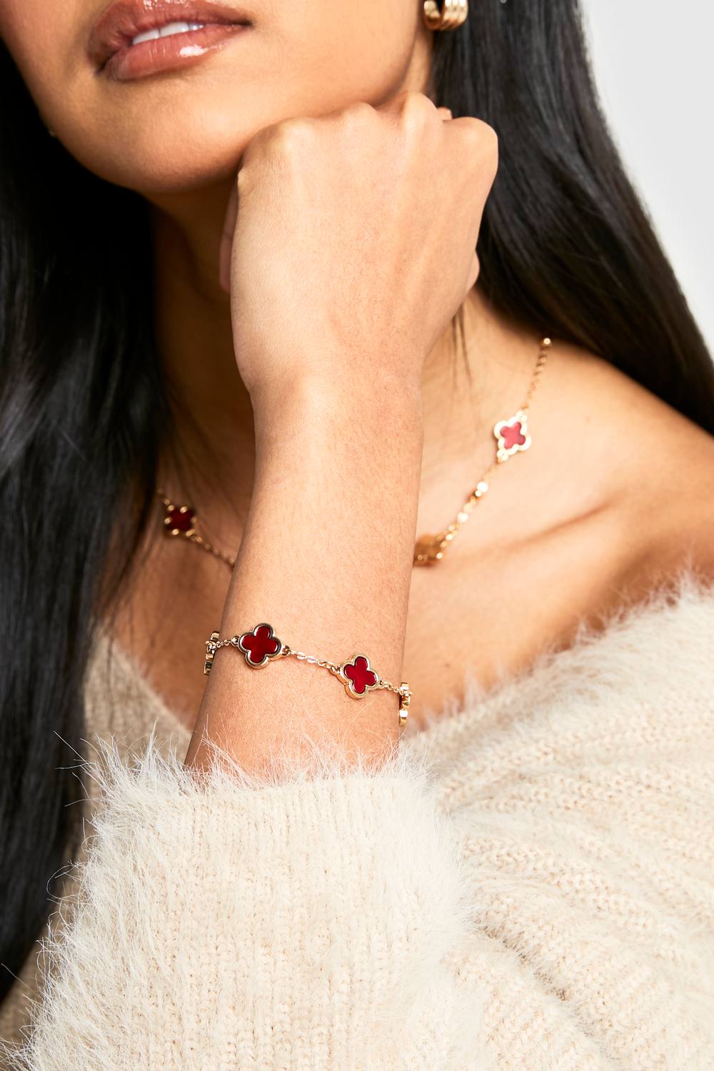 Womens Cherry Red Scattered Clover Bracelet - One Size, Red