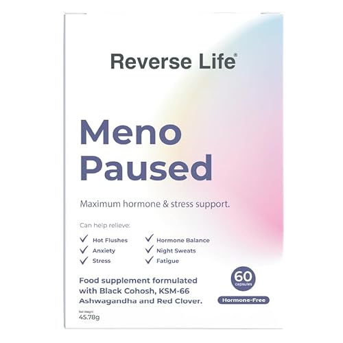 Reverse Life - MenoPaused Menopause Supplements - Hormone and Stress Support Food Supplement with Vitamin B6, Black Cohosh, KSM-66 Ashwagandha and Red Clover - 60 Capsules