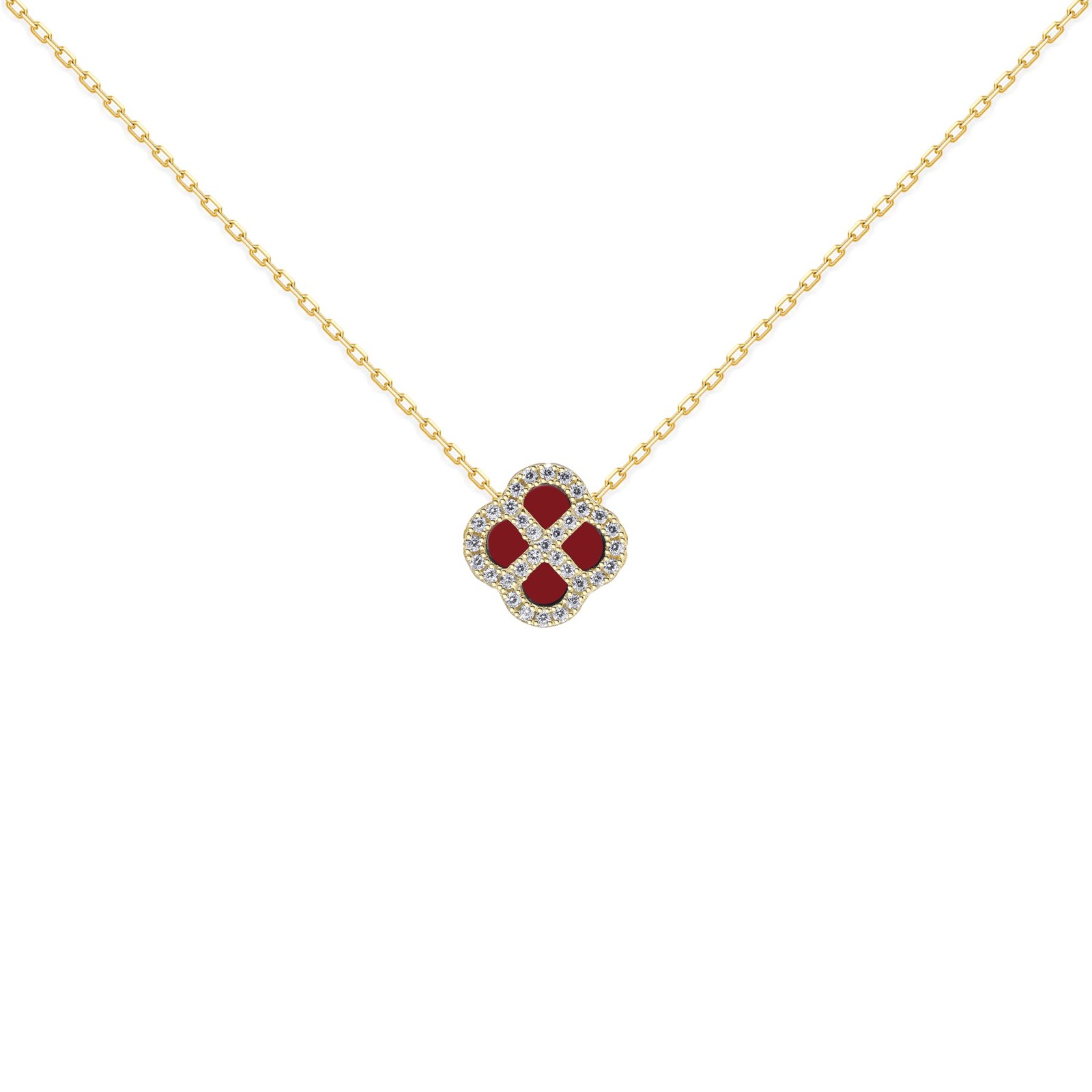 Gold-plated Silver Jewelco London CZ Red Agate Clover Kiss Charm Necklace 16-18"