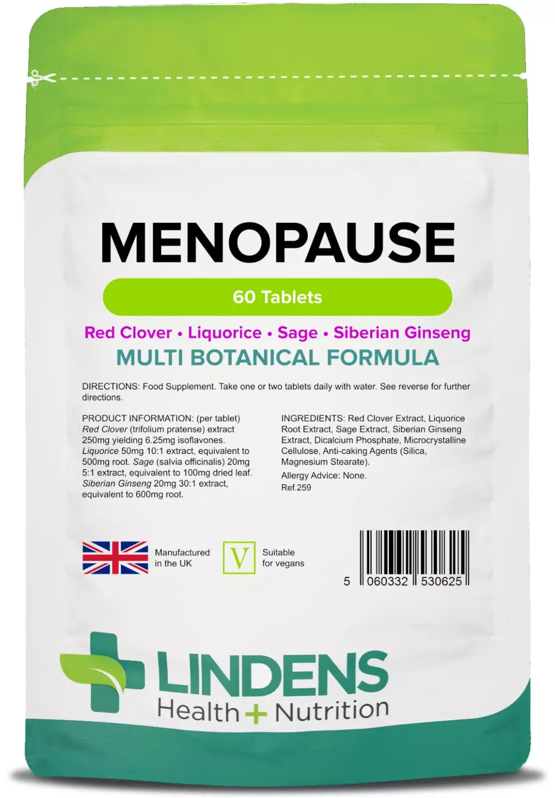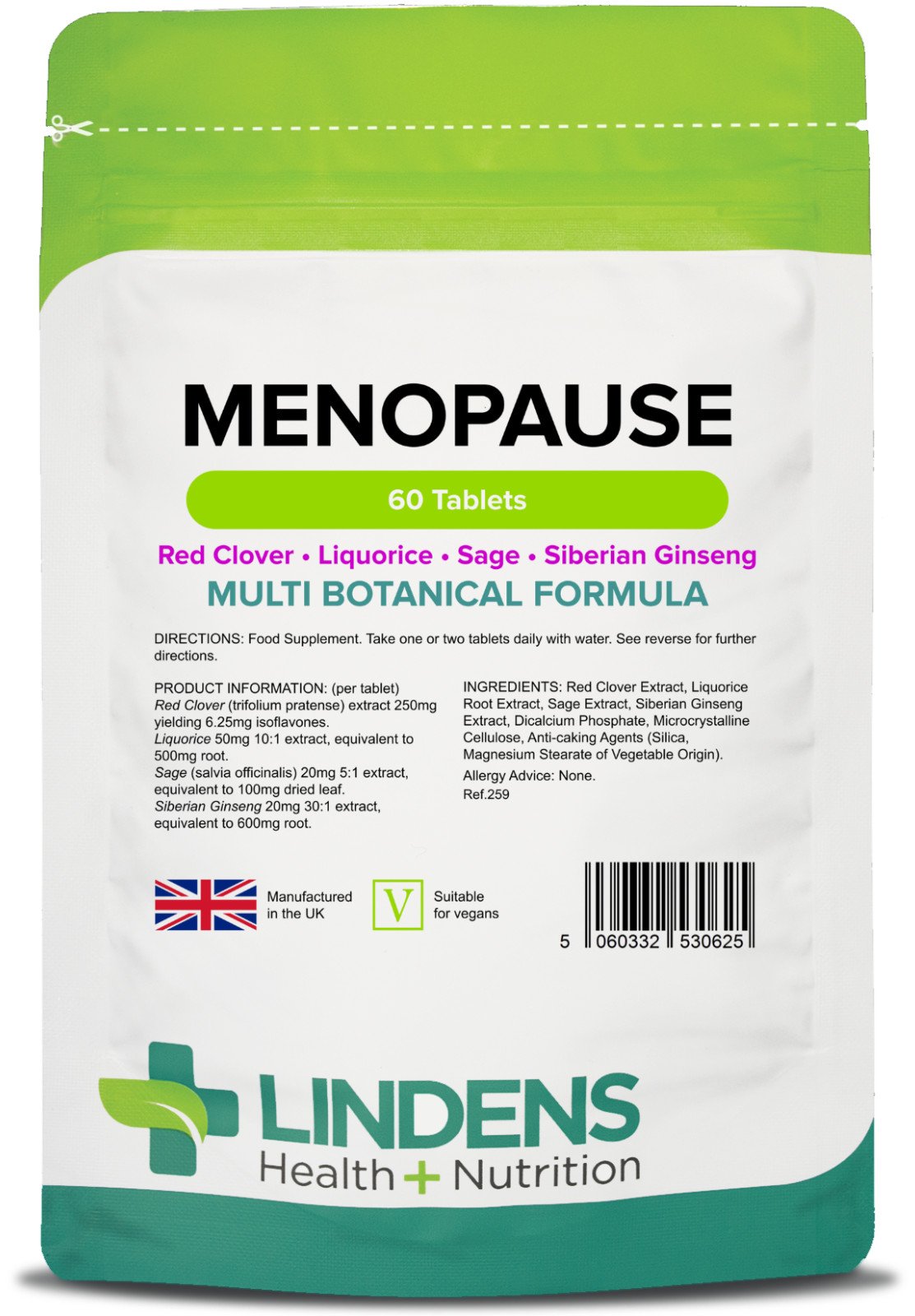 Menopause Formula 60 Tablets Red Clover women going through menopause Lindens