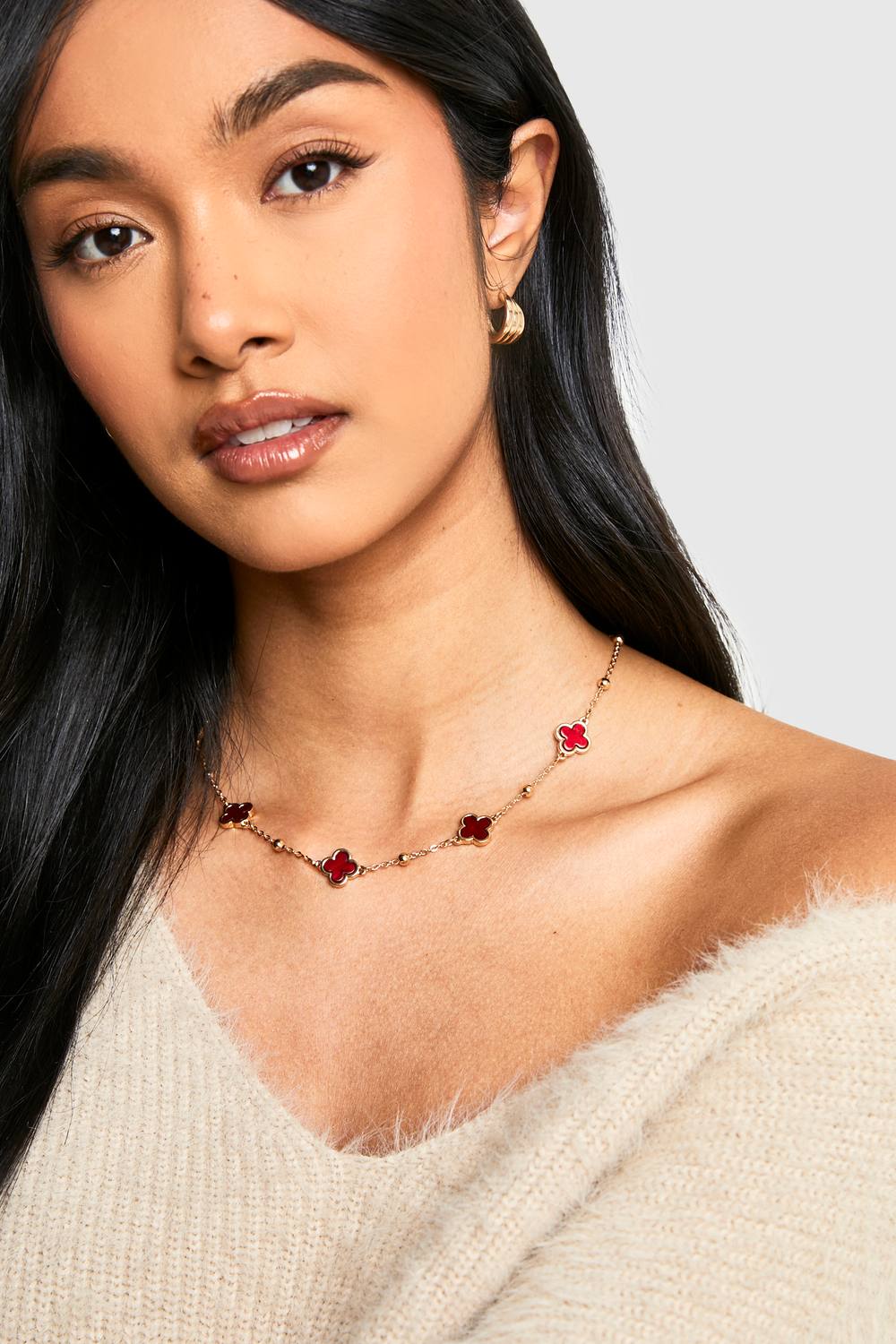 Womens Cherry Red Scattered Clover Necklace - One Size, Red