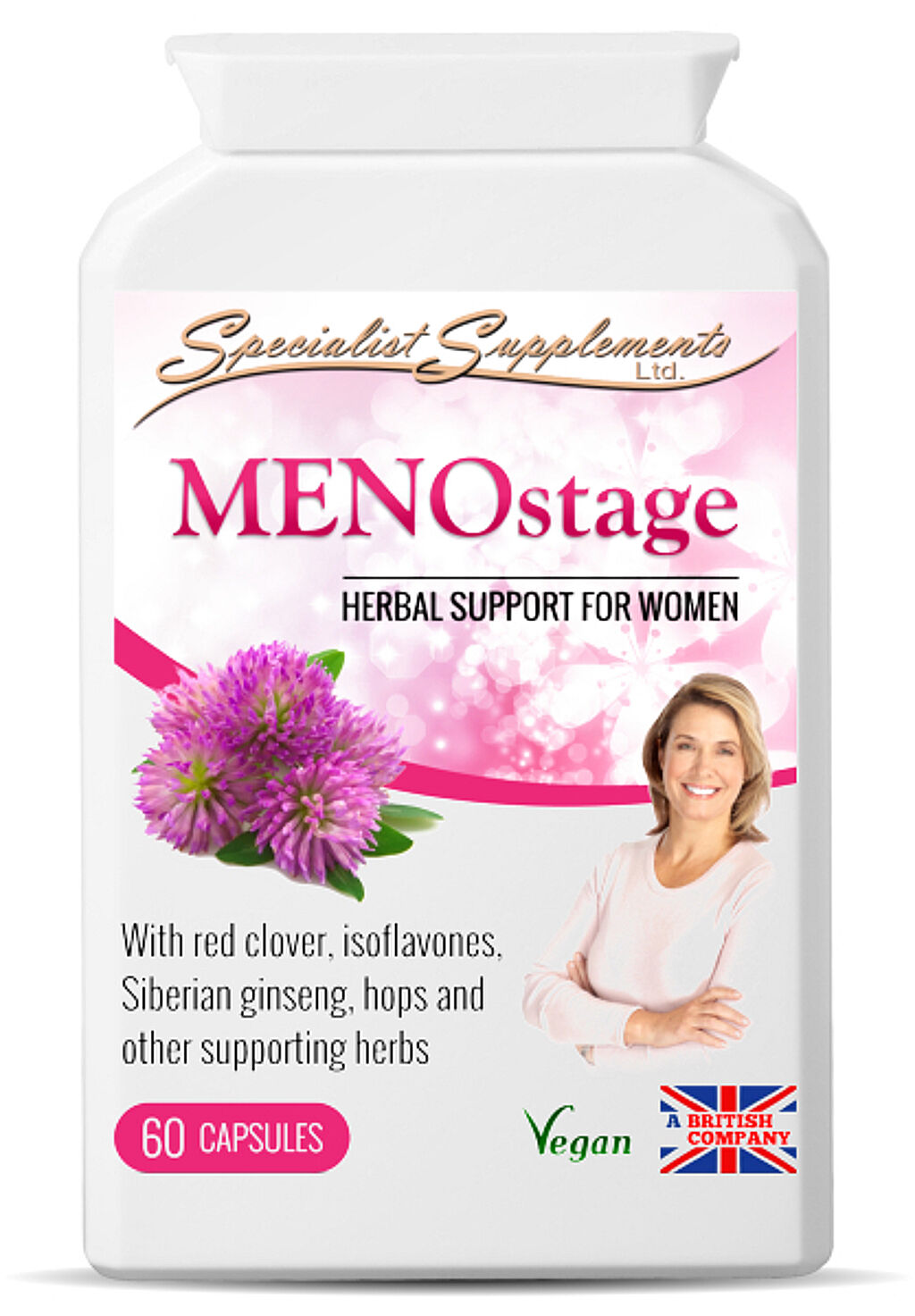 Vegan MENOstage Herbal Menopause Support Vitamin B6 Siberian Ginseng Red Clover