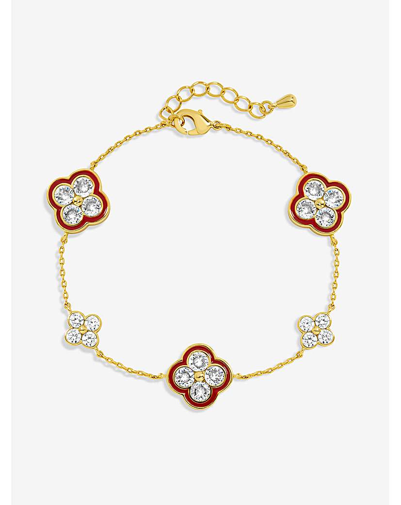 14K Gold Plated Pave Red Clover Bracelet Gold - Jon Richard