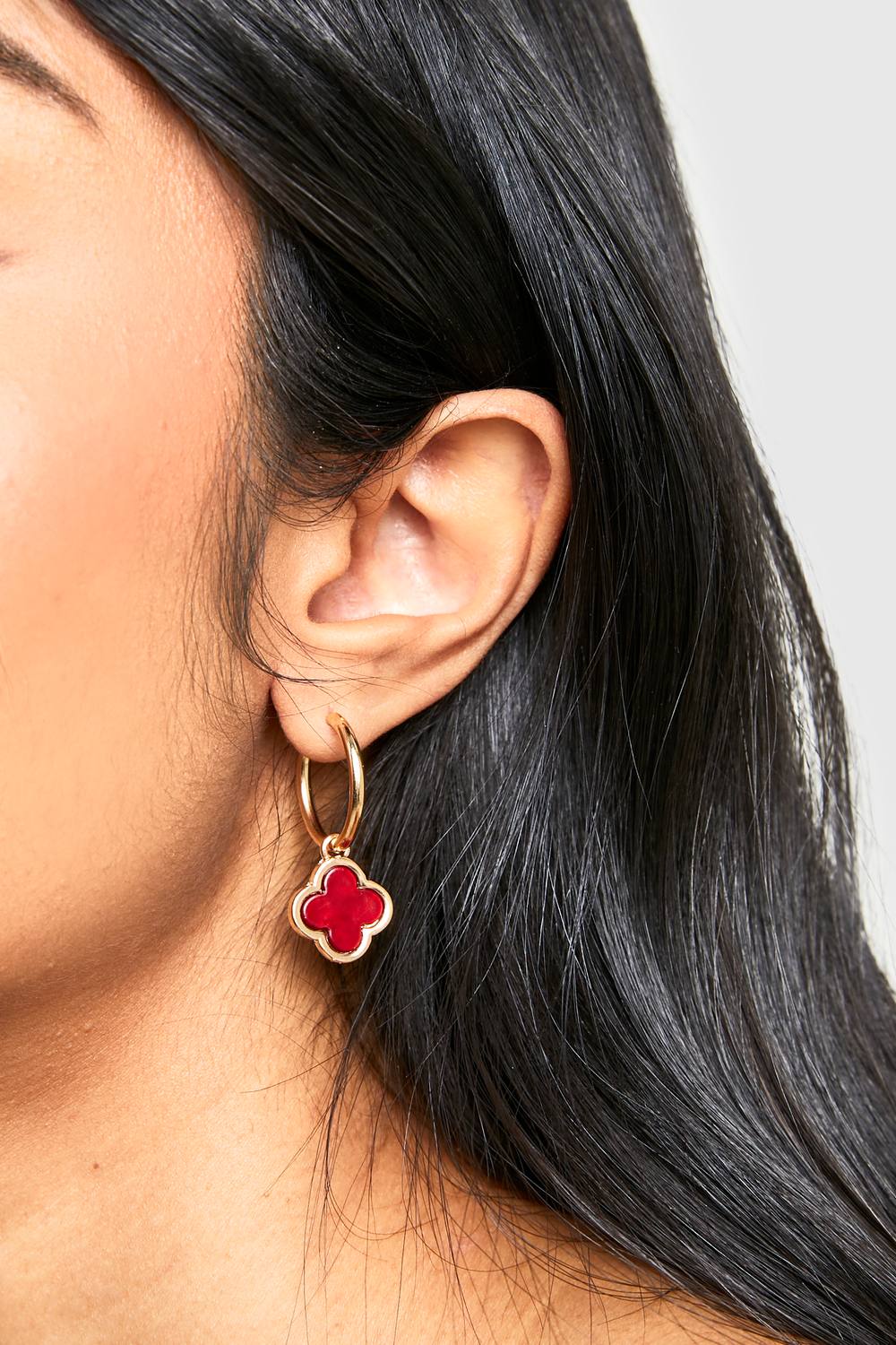 Womens Cherry Red Clover Hoop Earrings - One Size, Red