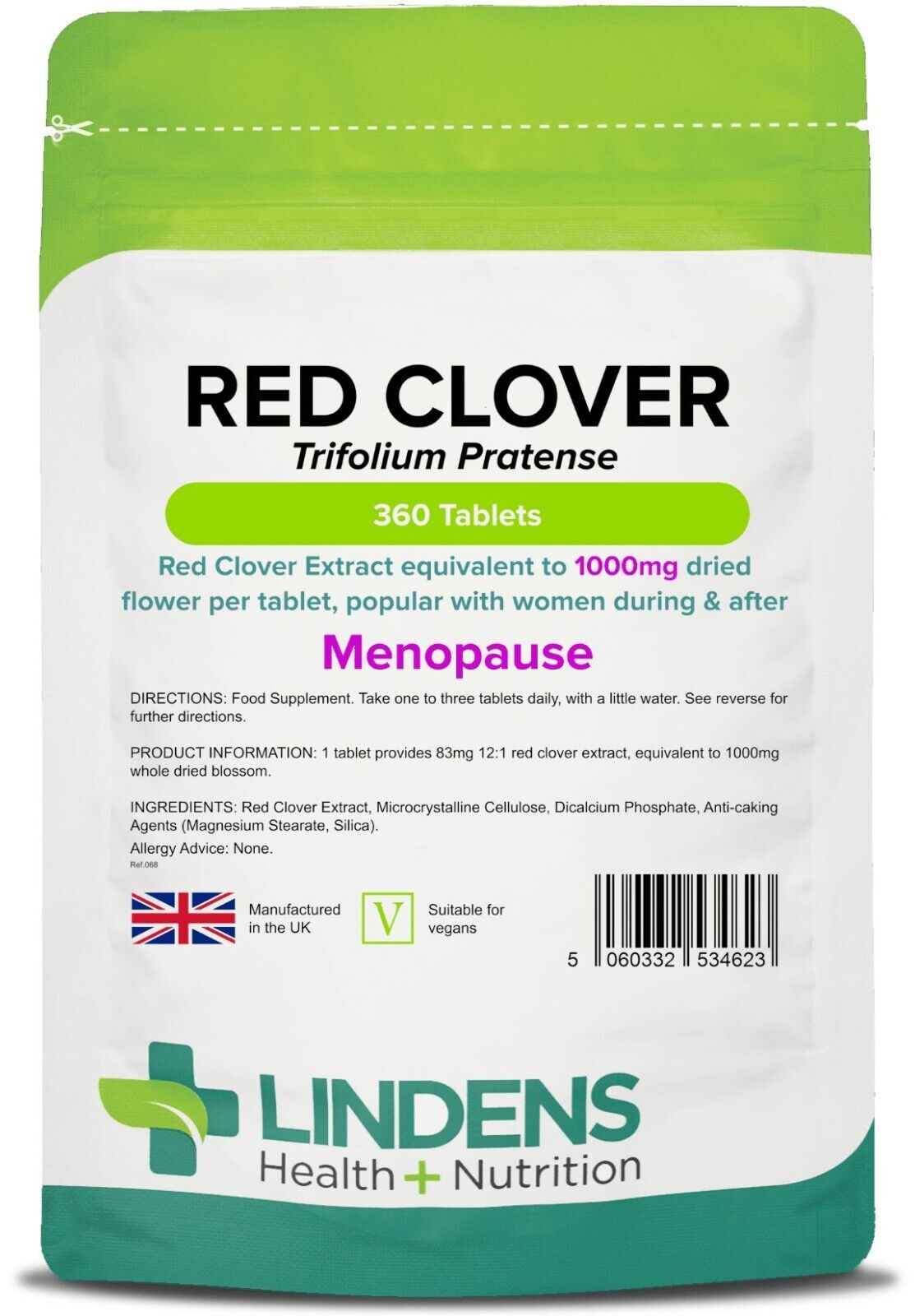 Red Clover 1000mg Popular Menopause Support Food Supplement 360 Tablet LINDENSUK