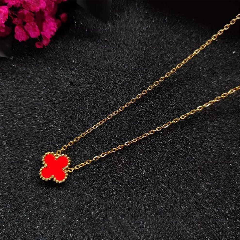 (red) Four-leaf Clover Necklace Double-sided Lucky Grass Titanium Steel Does Not Lose Colour Women's Necklace Classic Fashion Collarbone Chain
