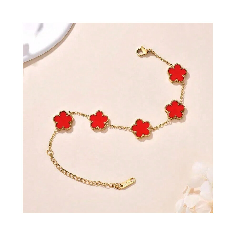 (Red A) Lucky Clover Bracelet 18k Gold Plated Bracelets Jewelry Gift For Women Girls