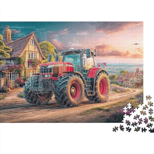 Rural Tractor Scene 1000 Pieces Premium Paper Puzzle Red Trac Dawn Jigsaw Colourful Unique Relaxing for Team Building 70x50cm/1000pcs