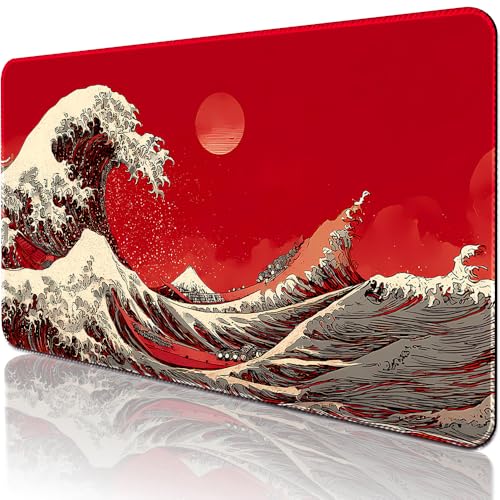 BUIBUIC MTG Playmats(Stitched) 14x24in Compatible for OCG CCG RPG TCG Playmats with Card Zones Storage Bag (Red Dawn Wave-No Zone)