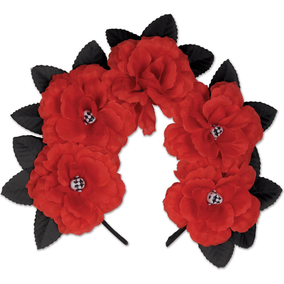 Dia de los Muertos Day of The Dead Red Rose Fancy Dress Flower Headband