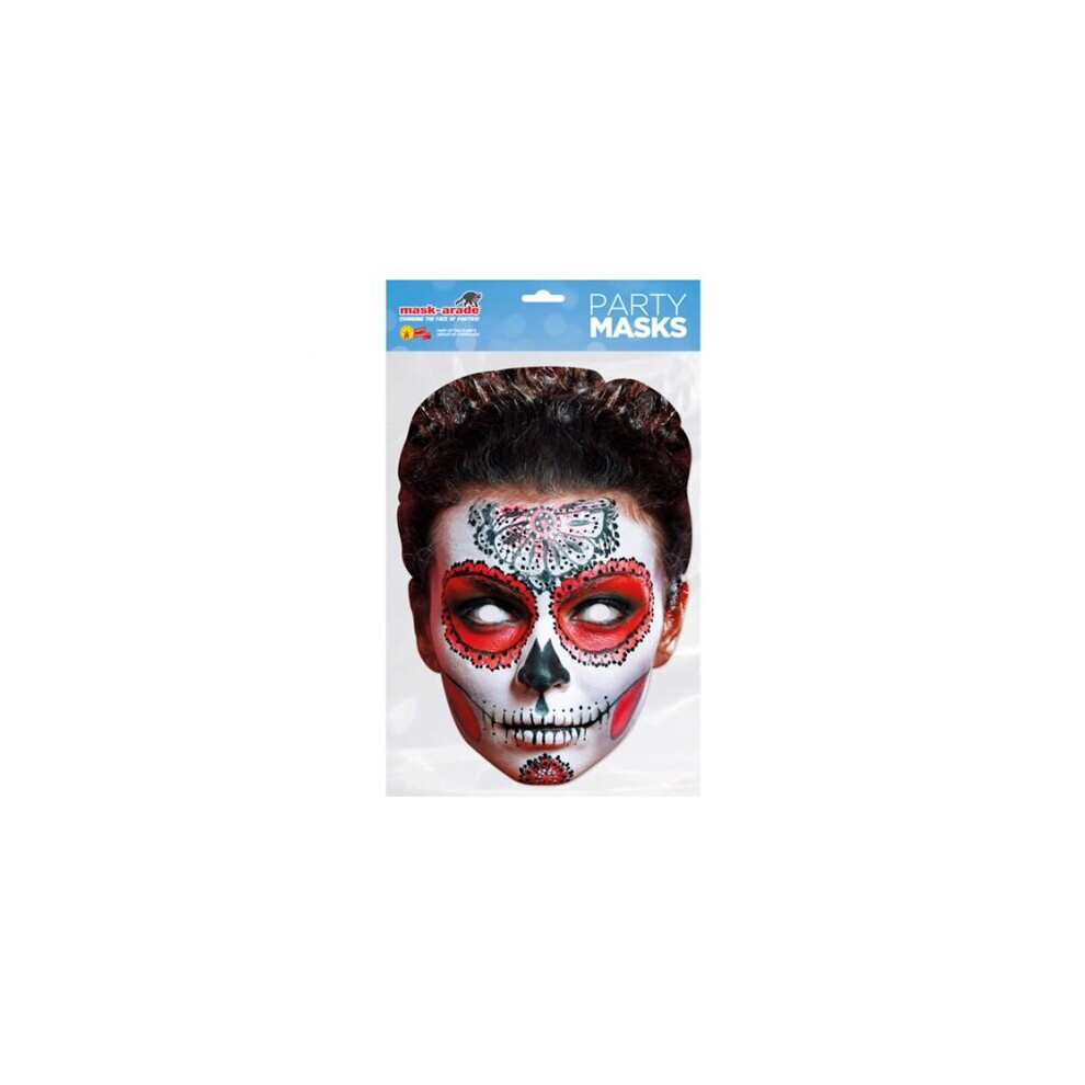 Day of the Dead Red Zombie Female Single 2D Card Party Fancy Dress Mask